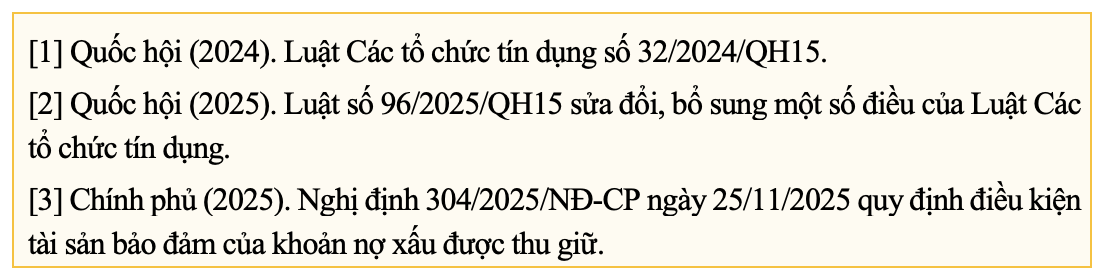 Trong bối cảnh đó, Nghị định 304/2025/NĐ-CP [3] được ban hành đánh dấu một bước tiến quan trọng trong việc hoàn thiện khung pháp lý xử lý nợ xấu tại Việt Nam. Nghị định 304/2025/NĐ-CP ra đời, tập trung vào khía cạnh cốt yếu của xử lý nợ: quyền thu giữ tài sản bảo đảm. Việc hoàn thiện quy định về quyền này giúp các tổ chức tín dụng thu hồi vốn hiệu quả, giảm thiểu rủi ro, mặt khác, cần đảm bảo tính nhân văn, tránh gây ảnh hưởng tiêu cực đến đời sống của người dân.