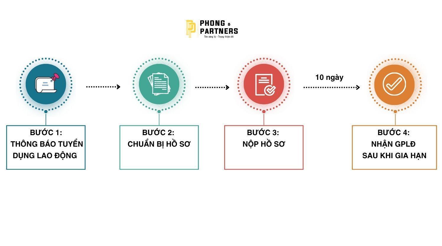 Trong vòng 10 ngày làm việc kể từ khi nhận đủ hồ sơ, cơ quan có thẩm quyền xem xét và thực hiện gia hạn giấy phép lao động. Trường hợp không chấp thuận nhu cầu sử dụng người lao động nước ngoài hoặc không gia hạn giấy phép lao động, phải có văn bản trả lời nêu rõ lý do.