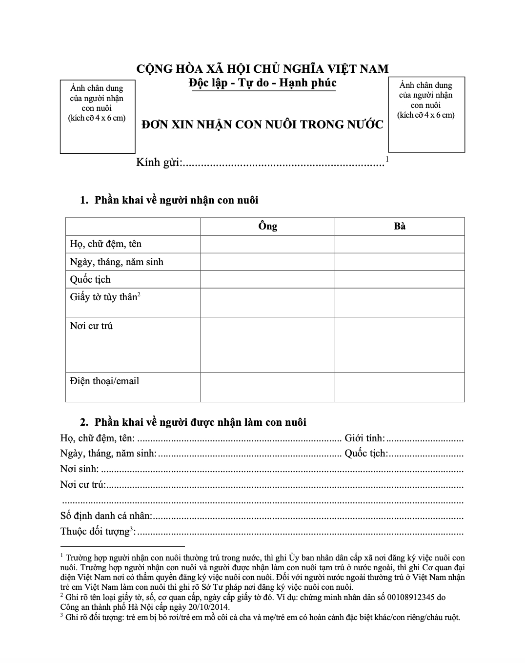 MẪU ĐƠN NHẬN CON NUÔI (tải mẫu tại đây)