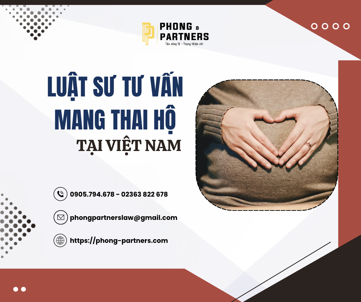 Việc tìm đến sự hỗ trợ của Luật sư tư vấn về thủ tục mang thai hộ tại Việt Nam là giải pháp tối ưu để bảo vệ quyền lợi và giảm thiểu rủi ro pháp lý trong suốt quá trình thực hiện. Từ việc nắm rõ quy định, chuẩn bị hồ sơ đúng luật, đến xử lý các tình huống phát sinh, sự đồng hành của Luật sư chuyên môn là yếu tố quan trọng giúp thủ tục diễn ra thuận lợi. Với đội ngũ Luật sư giàu kinh nghiệm từ Phong & Partners, quý khách hàng hoàn toàn có thể tin tưởng vào chất lượng tư vấn và hỗ trợ pháp lý hàng đầu trong khu vực.