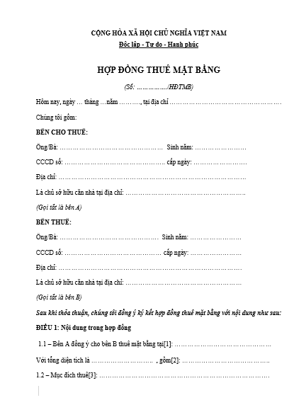 (Tải về mẫu Hợp đồng thuê mặt bằng kinh doanh mới nhất 2026)
