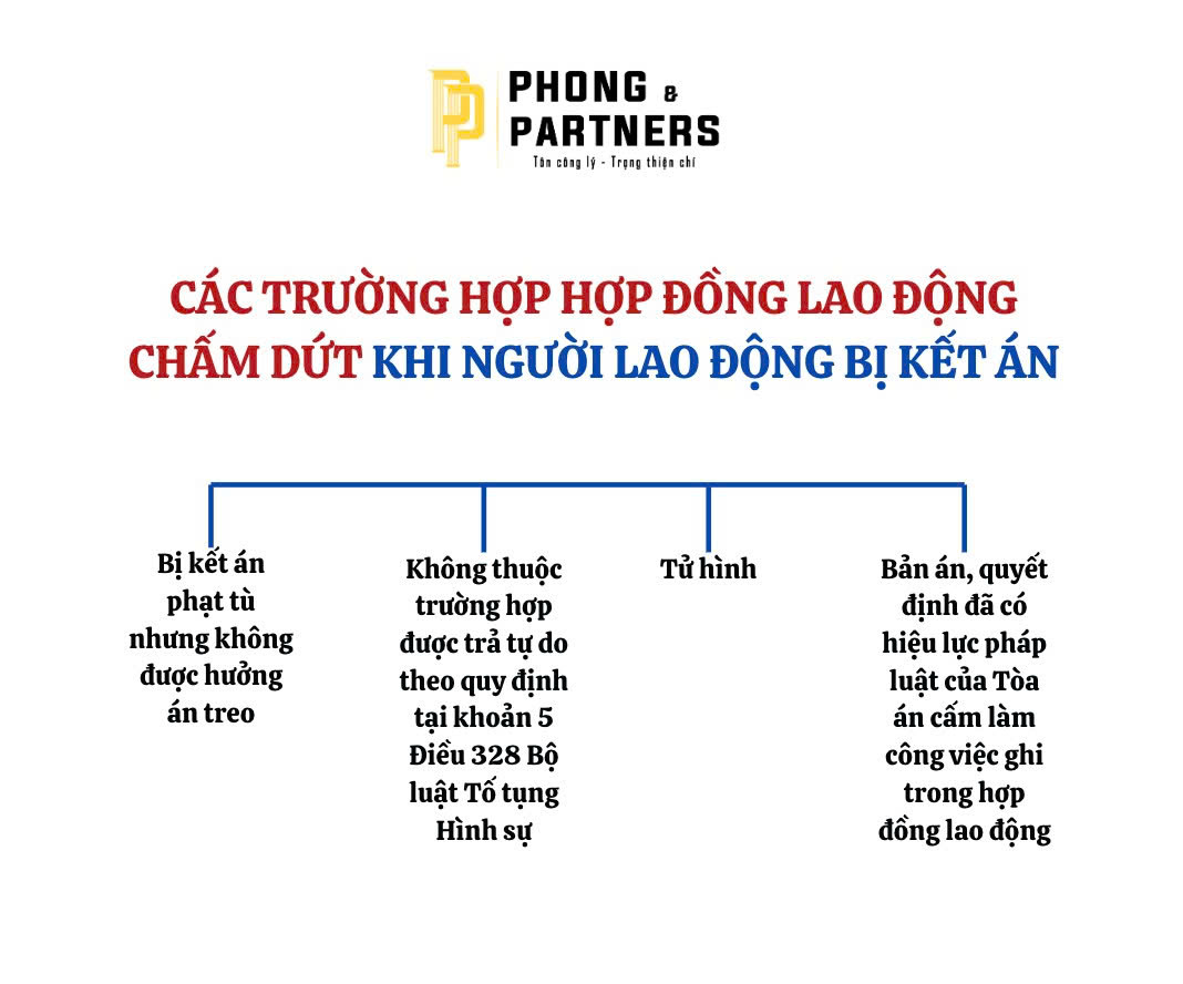 + Người lao động bị kết án phạt tù nhưng không được hưởng án treo hoặc không được trả tự do, tử hình hoặc bị cấm làm công việc ghi trong hợp đồng lao động theo bản án, quyết định của Tòa án đã có hiệu lực pháp luật.
